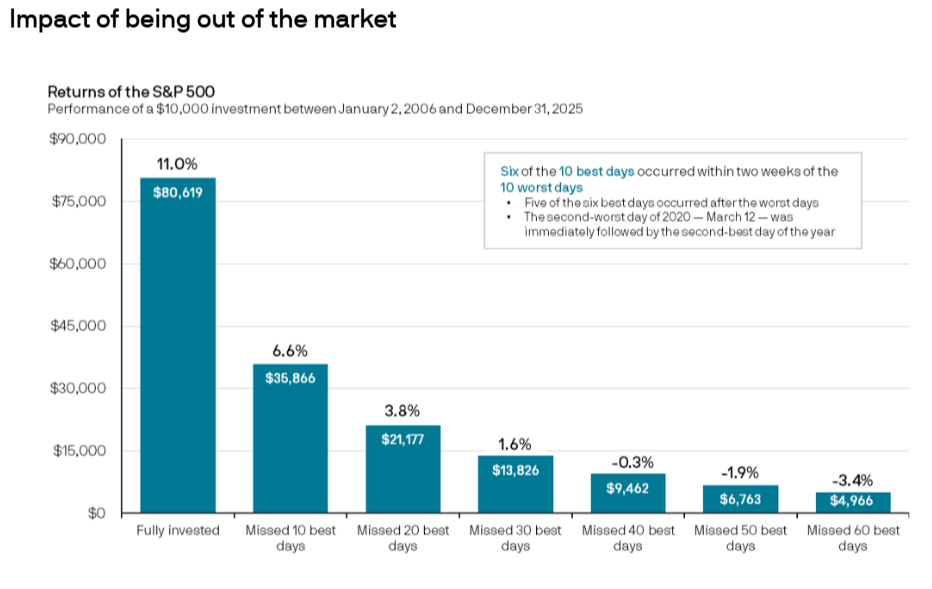 One last note, timing the market is very hard. Many of you know this and have heard me talk about how hard it is. It bears repeating: timing the market is very, very hard. On Monday, I had a few conversations about the market events and discussed possible entry points into the stock or other markets. The market was down, maybe a percent or two in the middle of the day Monday, I remember saying, " It's just so hard to know how this will unfold. That afternoon, a reporter tweeted that she spoke with President Trump, who said the war was going ahead of schedule. The market rallied nearly instantly and ended the day higher. The rest of the week has been flat or down, but this is the sort of volatility that accompanies geopolitical events like this. As a reminder, don’t focus on daily movements; focus on allocation and long-term market themes and trends.